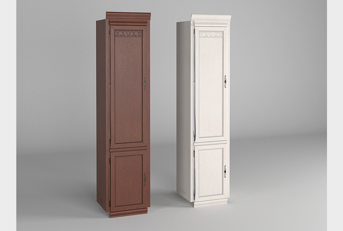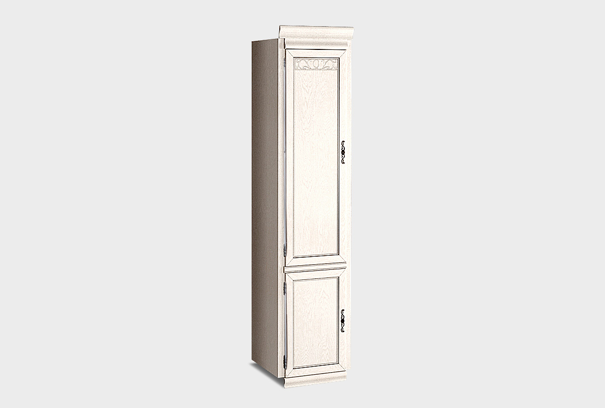 Левый однодверный шкаф Тэфи» в цвете «белая эмаль с темной патиной» из массива и шпона дуба станет прекрасным дополнением к гостиной или кабинету в классическом стиле.