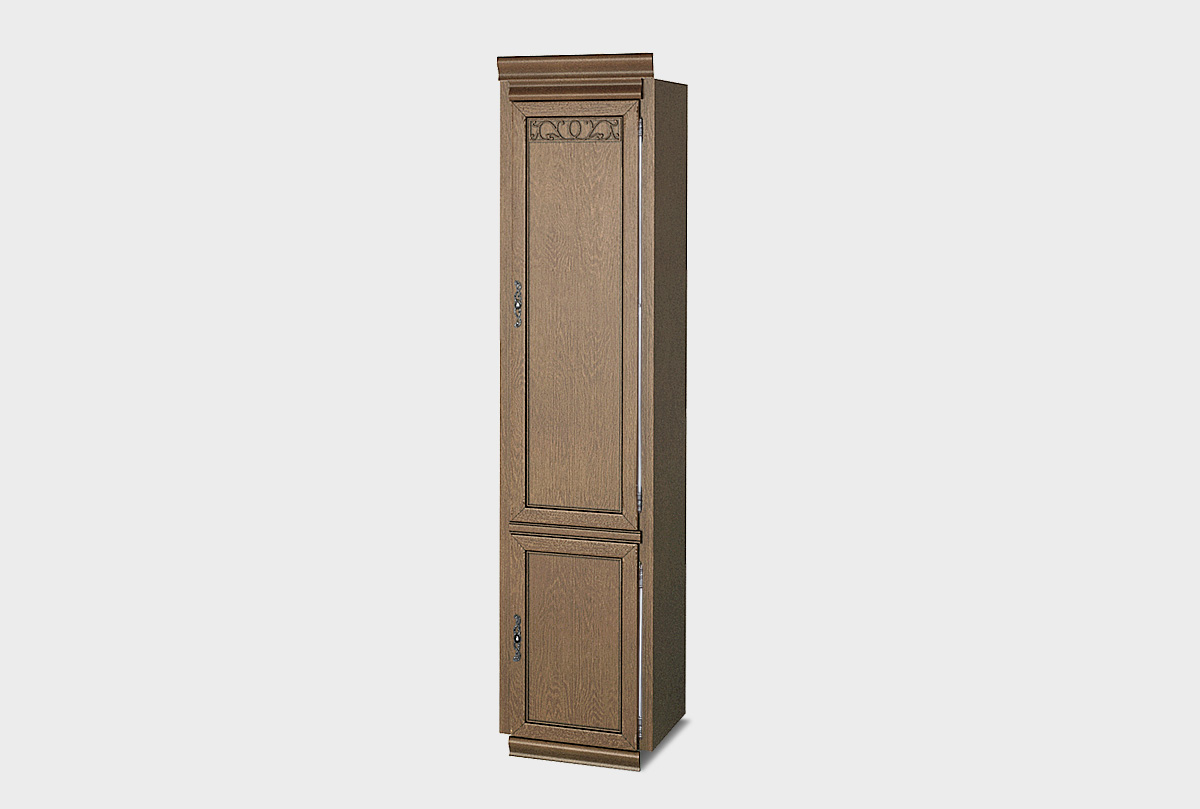 Правый однодверный шкаф Тэфи» в цвете «амбэр с белой патиной» из массива и шпона дуба станет прекрасным дополнением к гостиной или кабинету в классическом стиле.