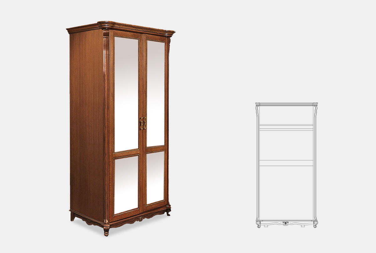 Шкаф 2-х дв. "Алези" с зеркалом, античная бронза, со штангой, (.Г000067864)