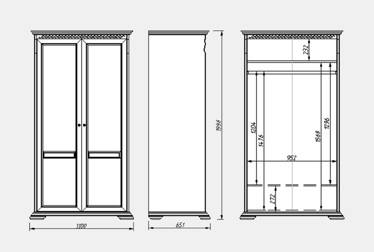 ✅ За распашными дверями две несъемные полки сверху и снизу, а также металлическая штанга.