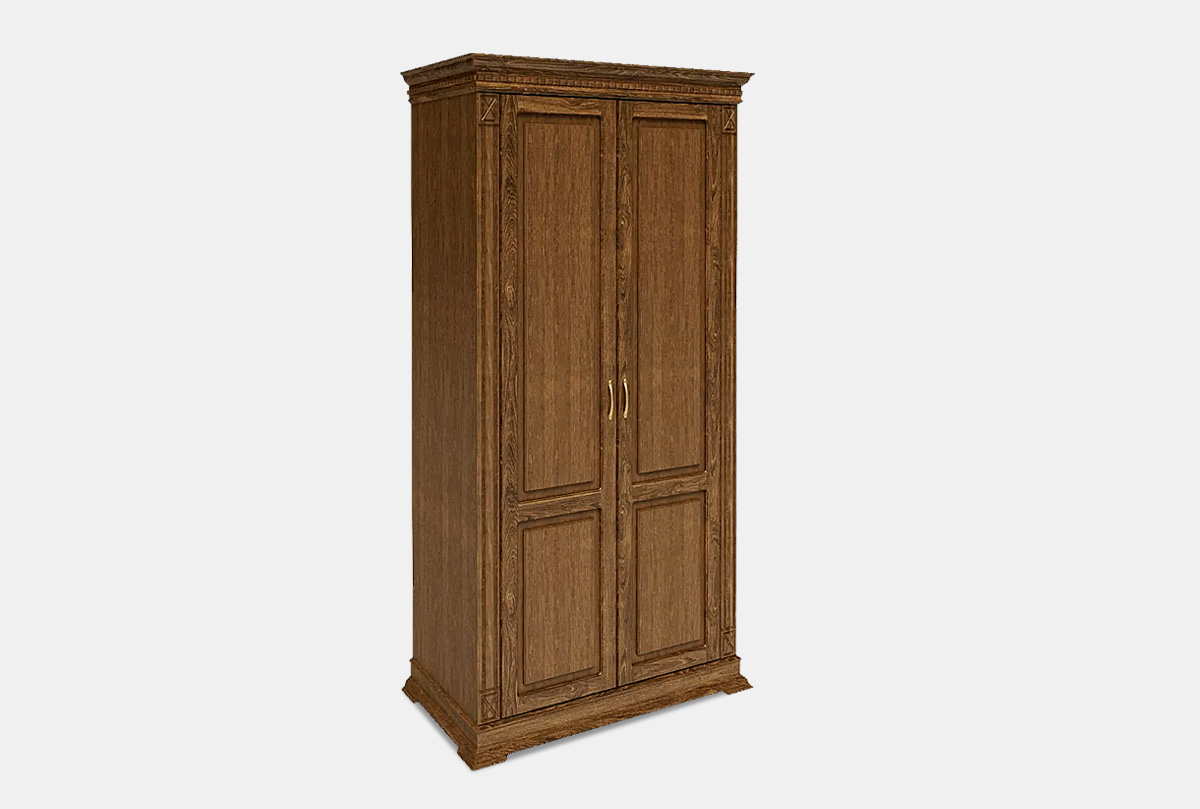 Двухдверный шкаф из коллекции «Верди Люкс» подойдет даже для небольшой квартиры. Он очень вместительный и имеет продуманное функциональное наполнение: штангу для одежды и верхнюю полку. Шкаф подойдет как для гостиной и спальни – в нем Вы сможете хранить личные вещи и постельное белье, так и для прихожей – на его дно можно поставить коробки с обувью, а на верхней полке хранить головные уборы.