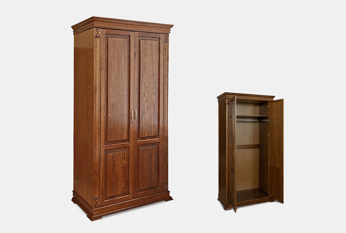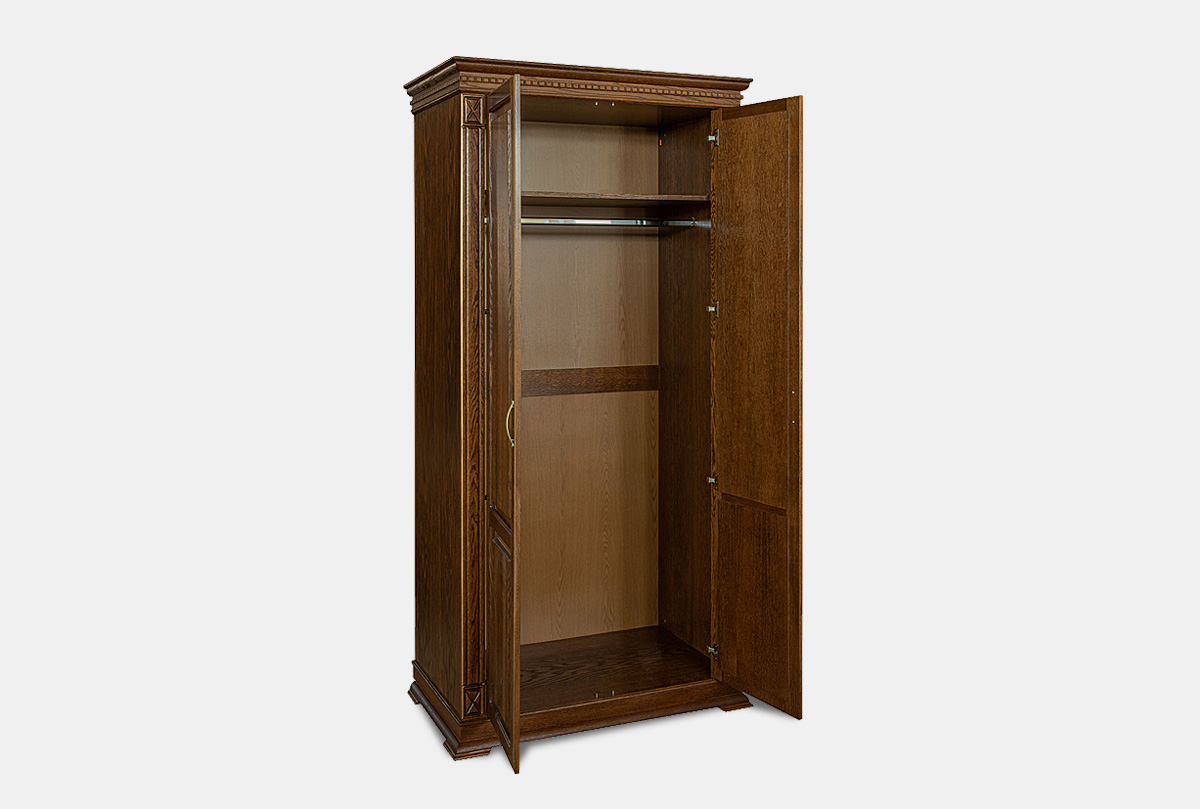 Двухдверный шкаф из коллекции «Верди Люкс» подойдет даже для небольшой квартиры. Он очень вместительный и имеет продуманное функциональное наполнение: штангу для одежды и верхнюю полку. Шкаф подойдет как для гостиной и спальни – в нем Вы сможете хранить личные вещи и постельное белье, так и для прихожей – на его дно можно поставить коробки с обувью, а на верхней полке хранить головные уборы.