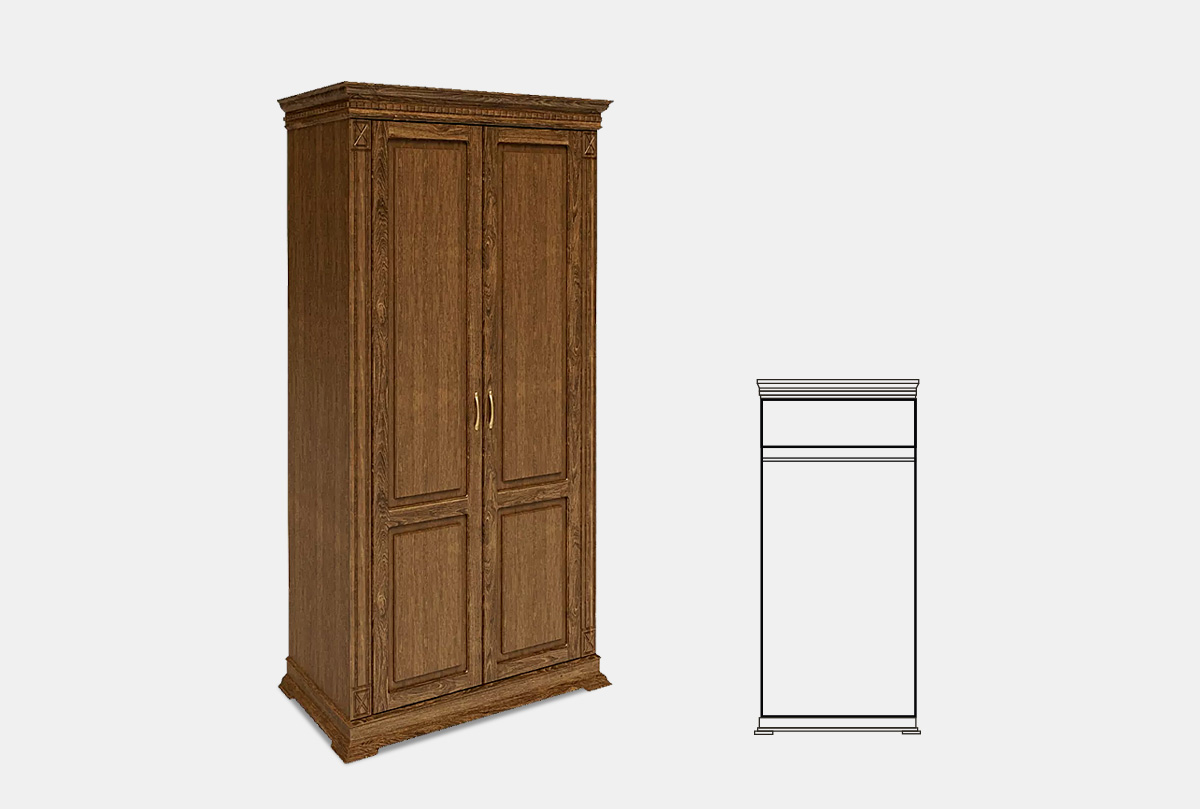 Двухдверный шкаф из коллекции «Верди Люкс» подойдет даже для небольшой квартиры. Он очень вместительный и имеет продуманное функциональное наполнение: штангу для одежды и верхнюю полку. Шкаф подойдет как для гостиной и спальни – в нем Вы сможете хранить личные вещи и постельное белье, так и для прихожей – на его дно можно поставить коробки с обувью, а на верхней полке хранить головные уборы.