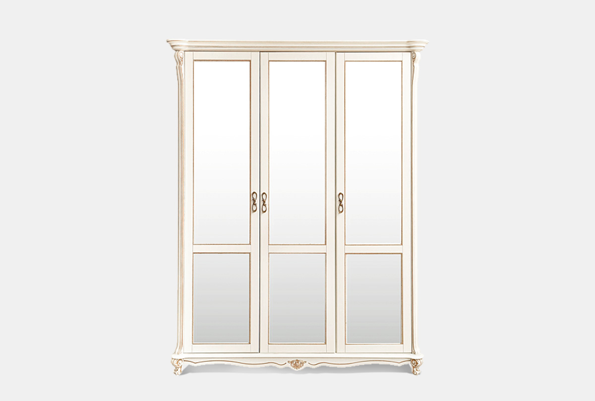 Массивный, но при этом изящный и элегантный трёхдверный шкаф для одежды с 3-мя зеркалами «Алези» в цвете «слоновая кость с золочением» подойдет как для городской квартиры, так и для загородного дома. Основательные формы компенсируются обилием декоративных элементов: ажурные пилястры, инкрустации по технологии маркетри и фигурный цоколь с резьбой в виде волны делают шкаф более «легким». Продуманное внутреннее наполнение позволяет разместить в шкафу вещи всей семьи.