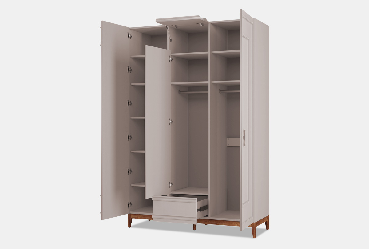 Особенности трехдверного шкафа «Сакраменто» с декором:
