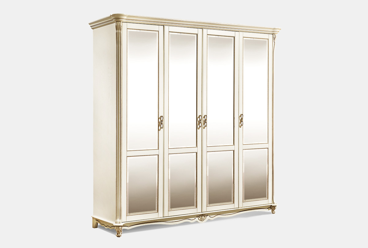 Шкаф 4-х дв. "Алези", слоновая кость с золочением, 4 зеркала, (.Г000067850)