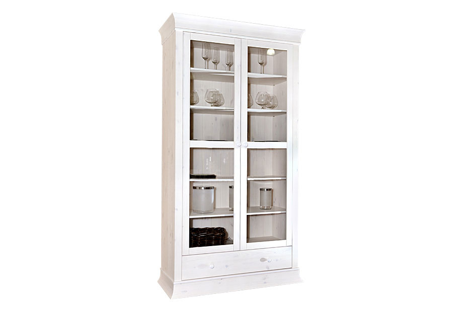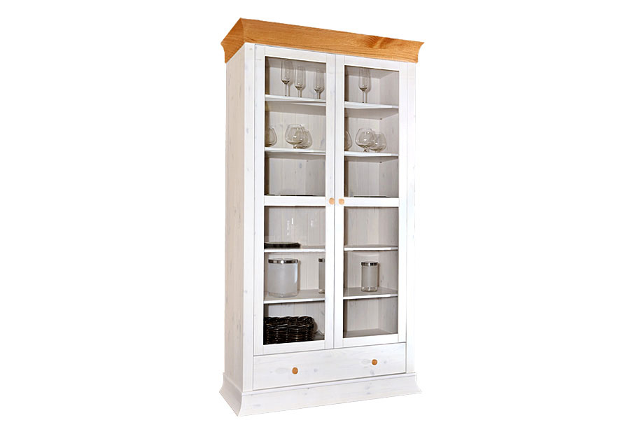 Шкаф «Бостон-21G» из массива сосны отлично впишется в кабинет или гостиную. Декоративные элементы лакированной сосны придают шкафу ностальгический вид. Две большие двери с прозрачным стеклом, за которым расположено шесть полок. Вы можете разместить в нем любимые книги, декоративные вазы или праздничные сувениры. Кроме того, шкаф оснащен ящиком.
