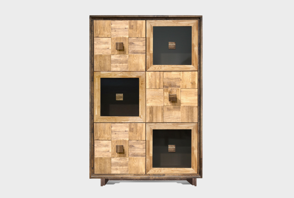 Шкаф "Cube Design" 6, графит + бейц-масло (шашки), фасад "шашки+стекло", (.Г000092382)