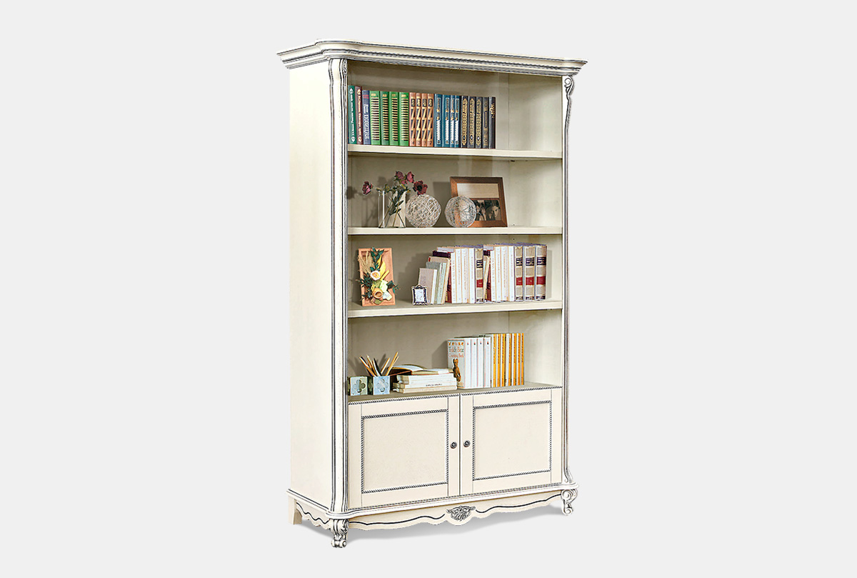 Шкаф для книг "Алези 2", слоновая кость с серебром, глухие двери, (.Г000056724)