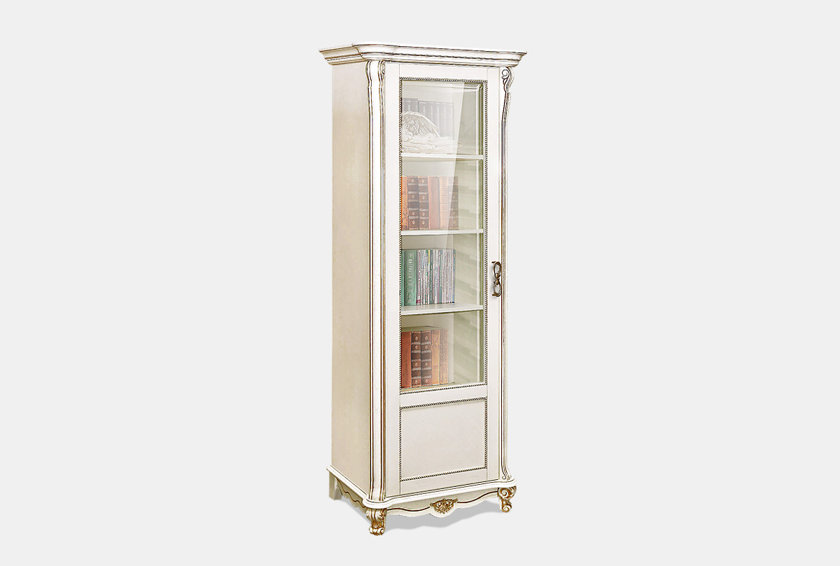 Шкаф для книг "Алези 8/1" (левый), слоновая кость с золочением, (.Г000042203)