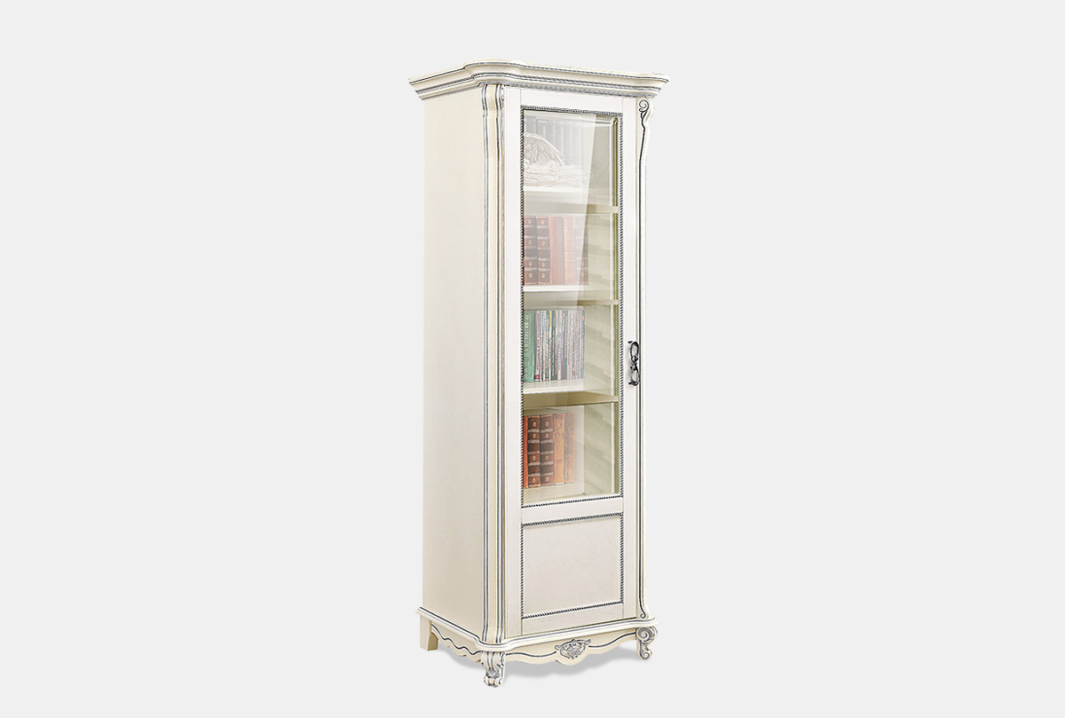 Шкаф для книг "Алези 8/1" (левый), слоновая кость с серебром, (.Г000056728)
