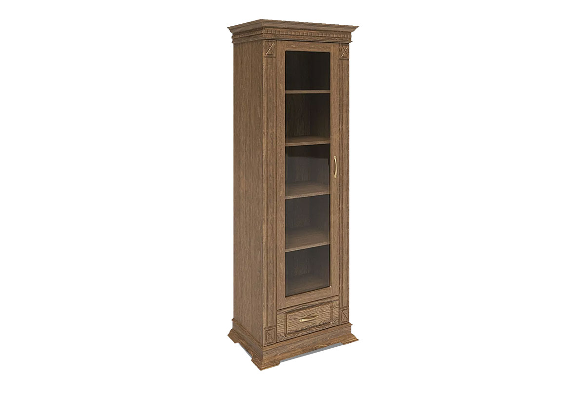 Шкаф из коллекции «Верди Люкс» станет отличным решением для гостиной, меблированной в классическом стиле. В него Вы можете поставить книги, фоторамки, сувениры из поездок, а в небольшой выдвижной ящик положить одежду. Декоративная резьба на пилястрах и фигурный цоколь подчеркивают изысканность, свойственную классическому стилю, а благородные оттенки крашения подчеркнут вкус владельца.