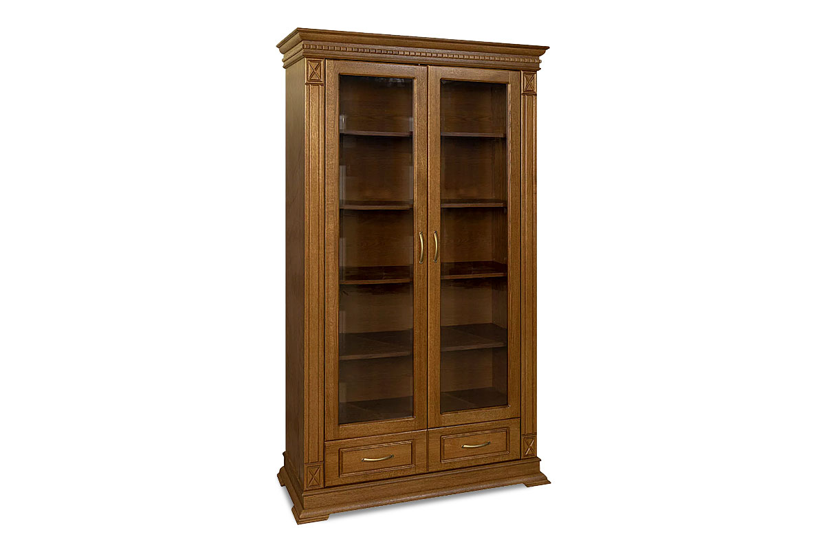 Шкаф из коллекции «Верди Люкс» станет отличным решением для гостиной, меблированной в классическом стиле. В него Вы можете поставить книги, фоторамки, сувениры из поездок, а в небольшие выдвижные ящики положить одежду. Декоративная резьба на пилястрах и фигурный цоколь подчеркивают изысканность, свойственную классическому стилю, а благородные оттенки крашения подчеркнут вкус владельца.