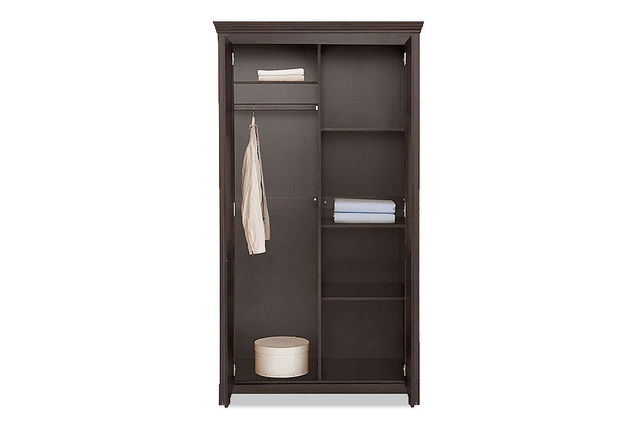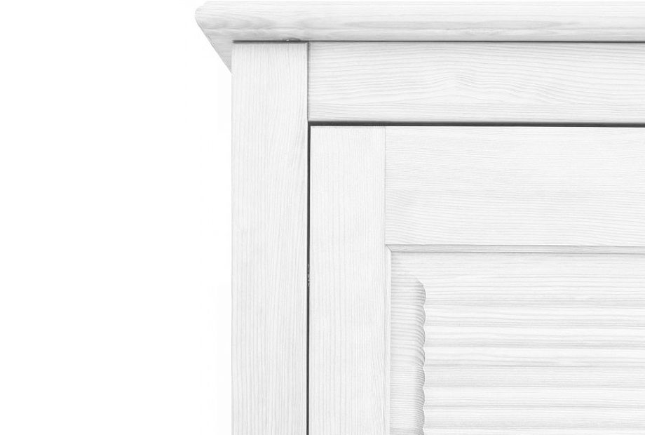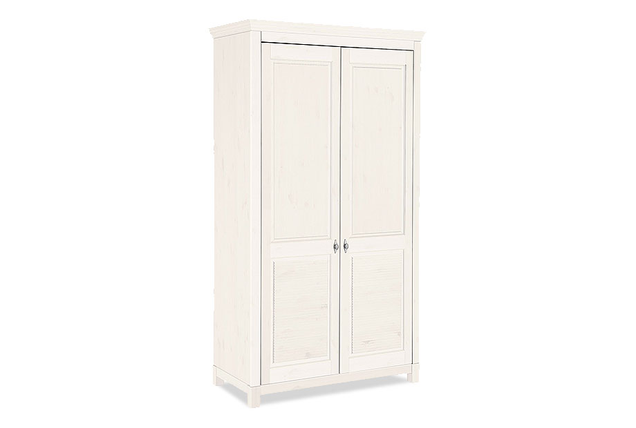 Двухдверный шкаф «Рауна» 20 для спальни в стиле Прованс предлагает достаточно места для ваших вещей. За двумя дверями вы можете прекрасно хранить футболки, свитера или брюки на трех регулируемых полках. Блузки, рубашки и платья находят свое место на штанге для одежды.