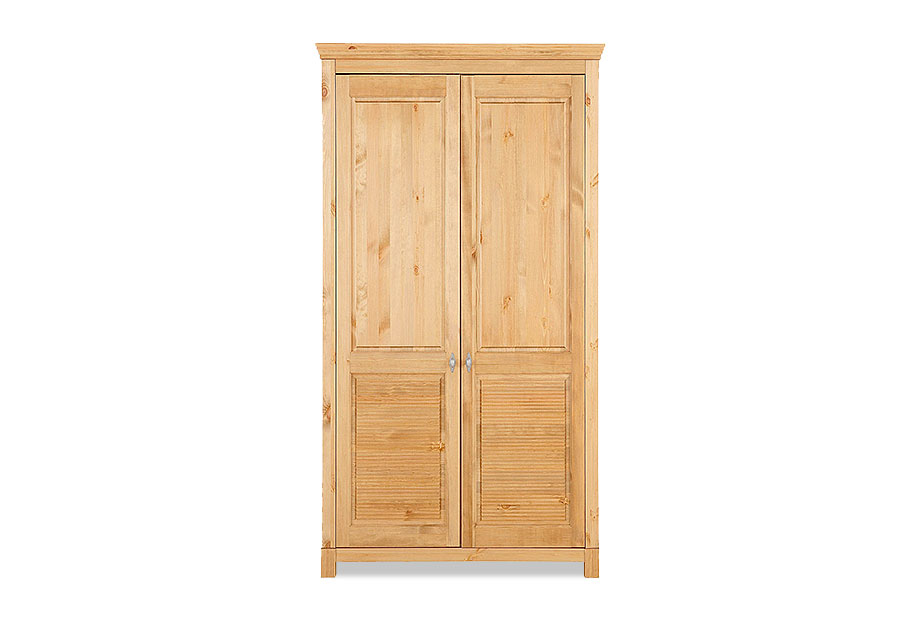 Двухдверный шкаф «Рауна» 20 для спальни в стиле Прованс предлагает достаточно места для ваших вещей. За двумя дверями вы можете прекрасно хранить футболки, свитера или брюки на трех регулируемых полках. Блузки, рубашки и платья находят свое место на штанге для одежды.