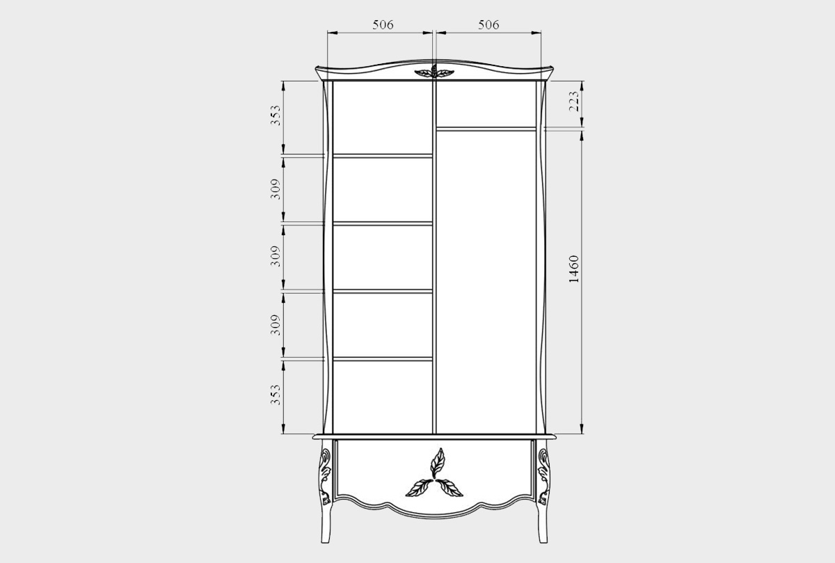 Шкаф для одежды 2-х дв. "Трио", коньяк с серебряной патиной + серебро, (.Г000079205)