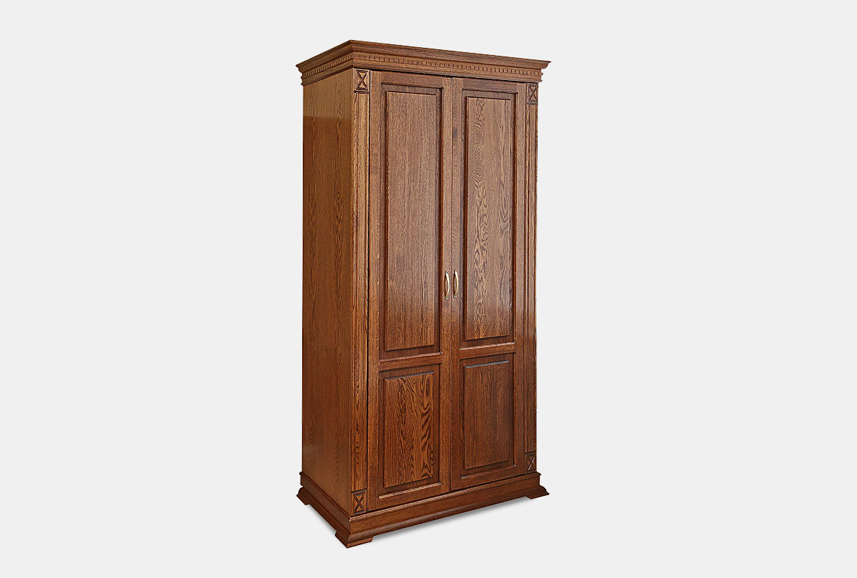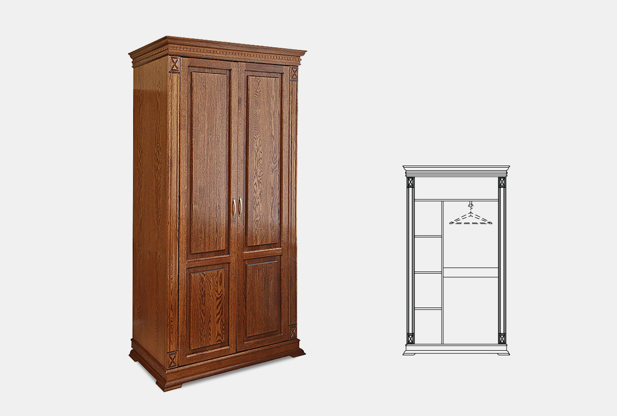 Шкаф двухдверный для одежды Верди Люкс 2/2 из массива дуба в классическом стиле, размеры: 115 х 200 см.