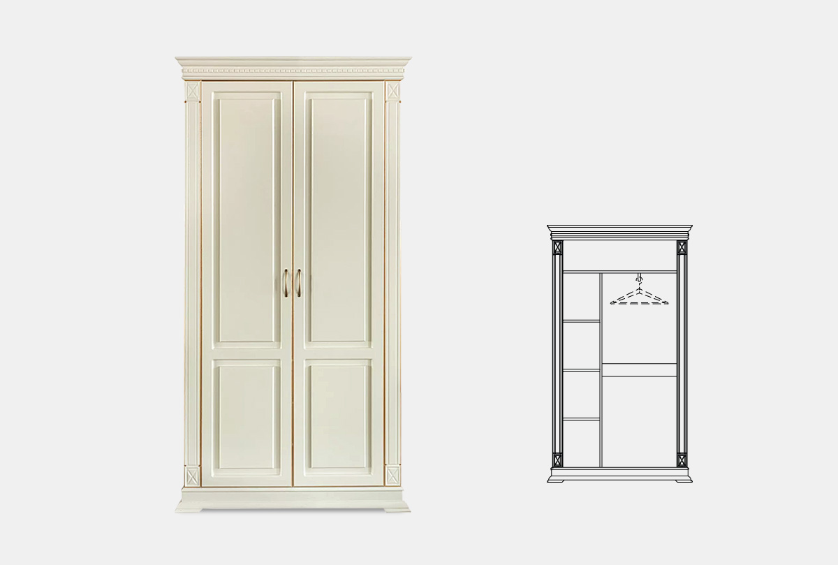 Шкаф для одежды 2-х дв. "Верди Люкс 2/2", слоновая кость с золочением, (.Г000068169)