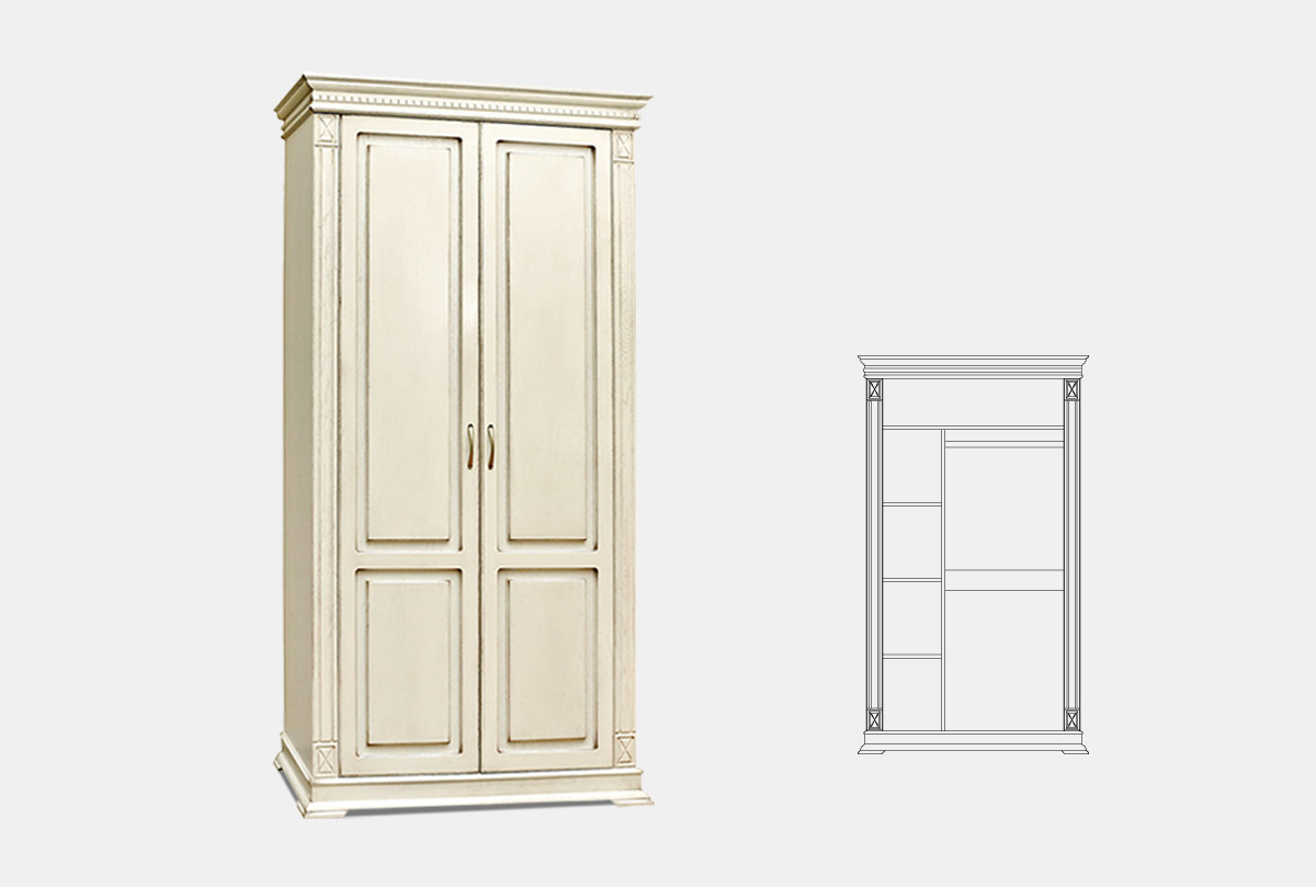 Шкаф для одежды 2-х дв. "Верди Люкс 2/3", слоновая кость, (.Г000025927)