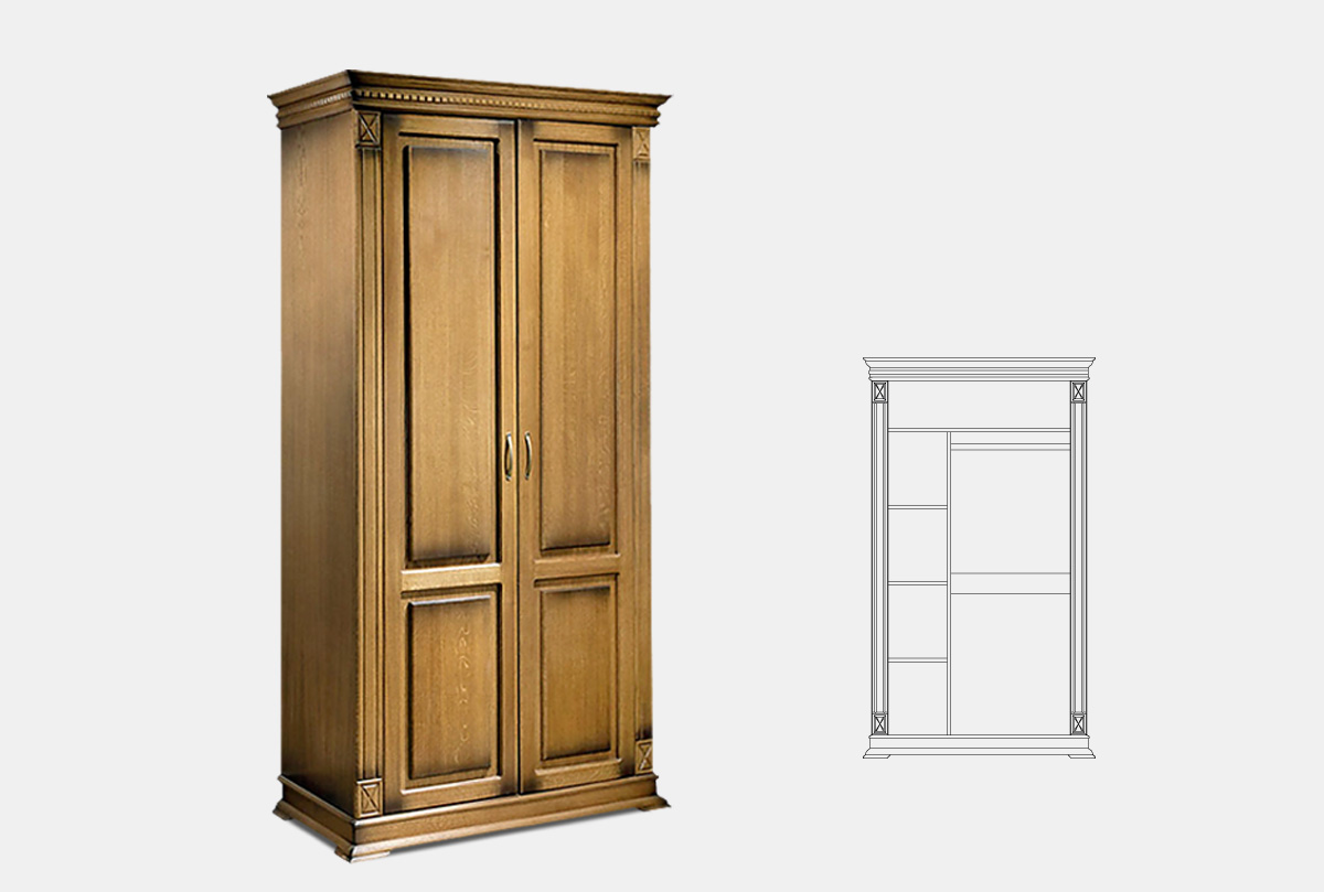 Шкаф двухдверный для одежды Верди Люкс 2/3 из массива дуба в классическом стиле, Размеры изделия: 1148 х 1996 х 637 мм.