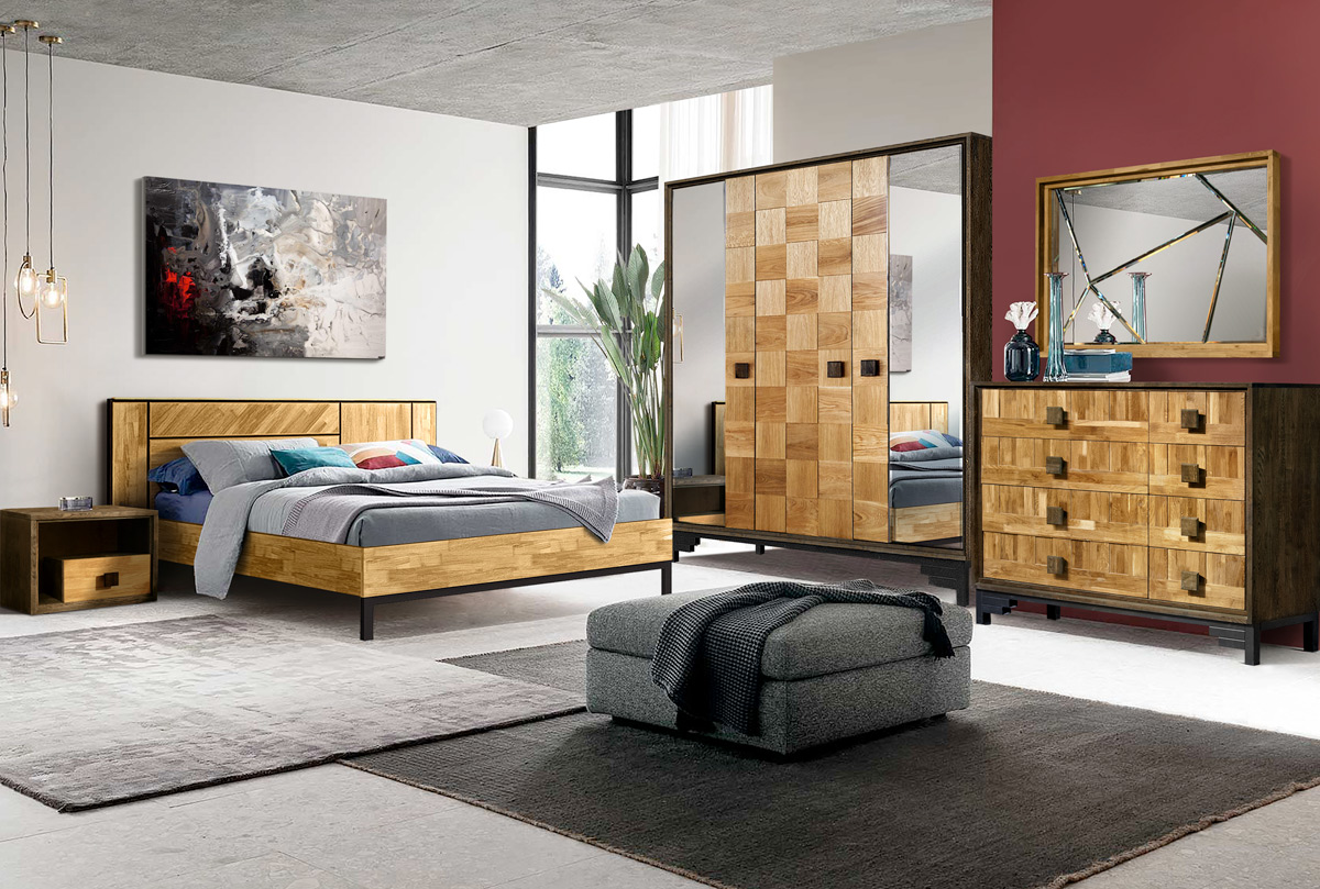 В коллекции представлен трехдверный шкаф для одежды. Вместительный шкаф с оригинальными фасадами «шашки» и зеркалом - уникальное предложение в стиле industrial!