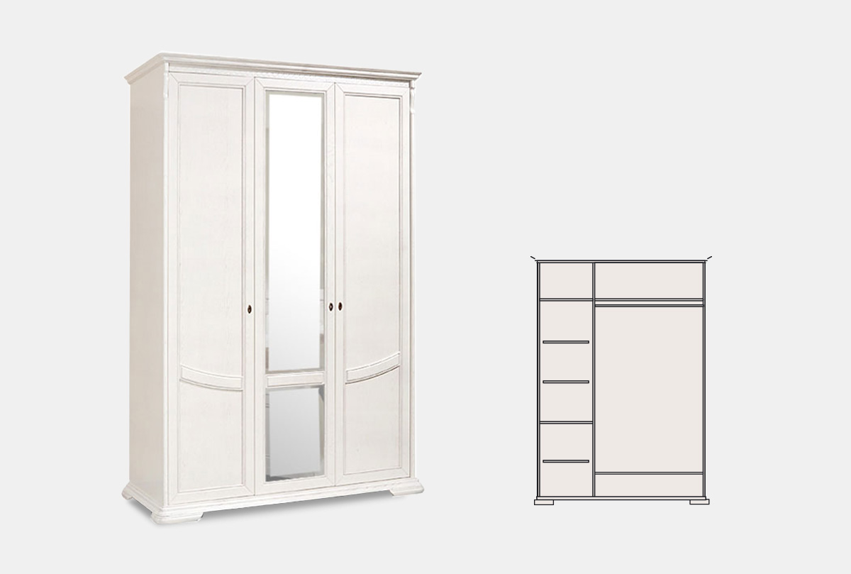 Особенности шкафа для одежды трехдверного «Лика» (с зеркалом) в цвете «белая эмаль»: