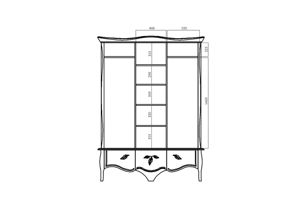 Шкаф для одежды 3-х дв. "Трио" (распашной), белая эмаль с золотой патиной, (.Г000028355)