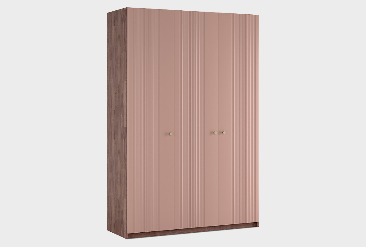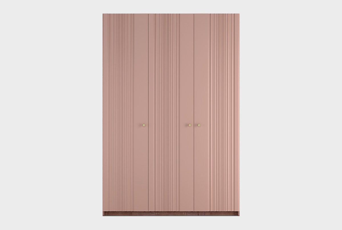 Шкаф 3-х дверный «Меридиан» — один из главных акцентов в коллекции: масштабный, элегантный и продуманный до мелочей. Он создан для тех, кто ценит не только вместимость, но и выразительную пластику мебели в интерьере. Фрезерованные фасады с изысканными волнами — словно ткань в движении. Динамика линий подчёркивается игрой света на поверхности.