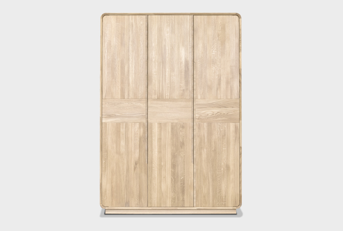 Трёхдверный шкаф «Монблан» в цвете «белёный дуб» воплощает эстетику коллекции в функциональной форме. Его фасад — с утопленными линиями и тонким профилем — выглядит стильно и при этом остаётся невероятно удобным в ежедневном использовании. Шкаф словно встроен в интерьер, не перегружая пространство, но добавляя в него ощущение порядка и уюта.