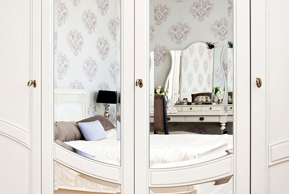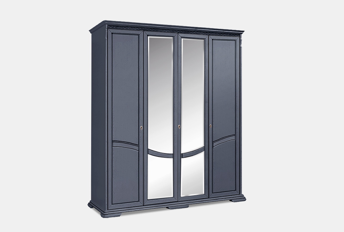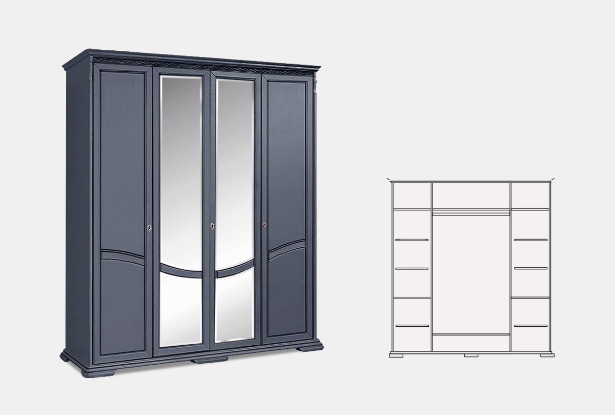 Особенности шкафа для одежды четырехдверного «Лика» (с зеркалом) в цвете в цвете «изабелла с темной патиной» :