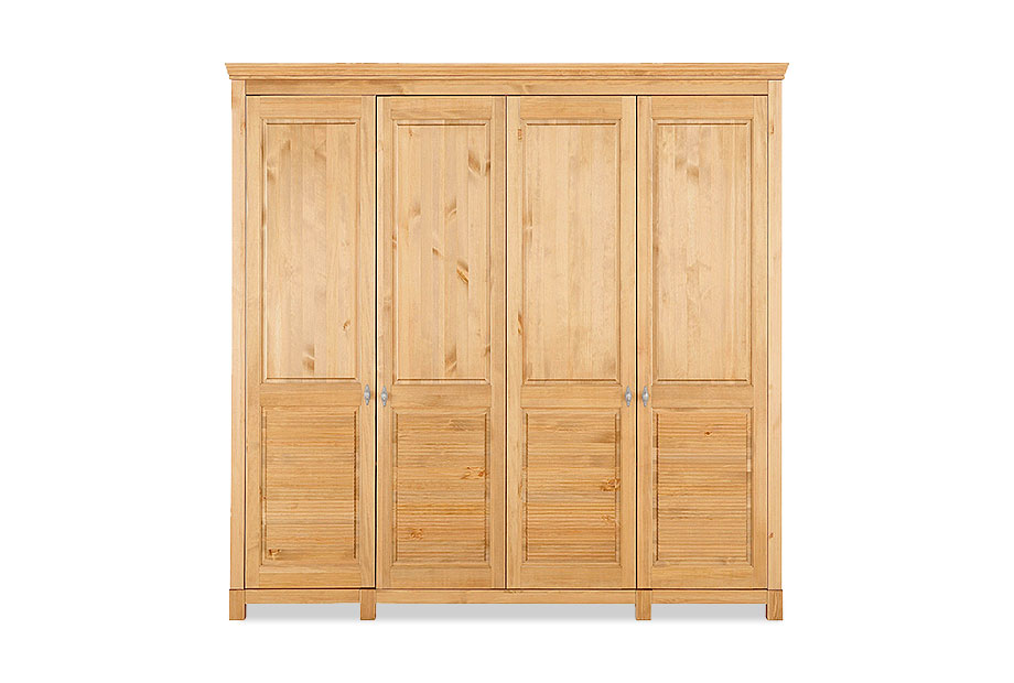 Четырехдверный шкаф для одежды «Рауна» 40 для спальни в стиле Прованс займет достойное место в вашем доме. За четырьмя распашными дверями вы найдете пространство для одежды со штангой, три регулируемые полки, секции для головных уборов и обуви. Это находка для тех, кто хотел бы грамотно организовать хранение всего своего гардероба, а также для семейного использования.