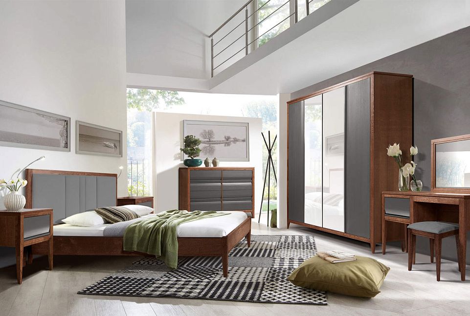 Шкаф для одежды 4-х дверный «Дакота» (с зеркалом), мадуро, серый оникс, (.Г000085586)