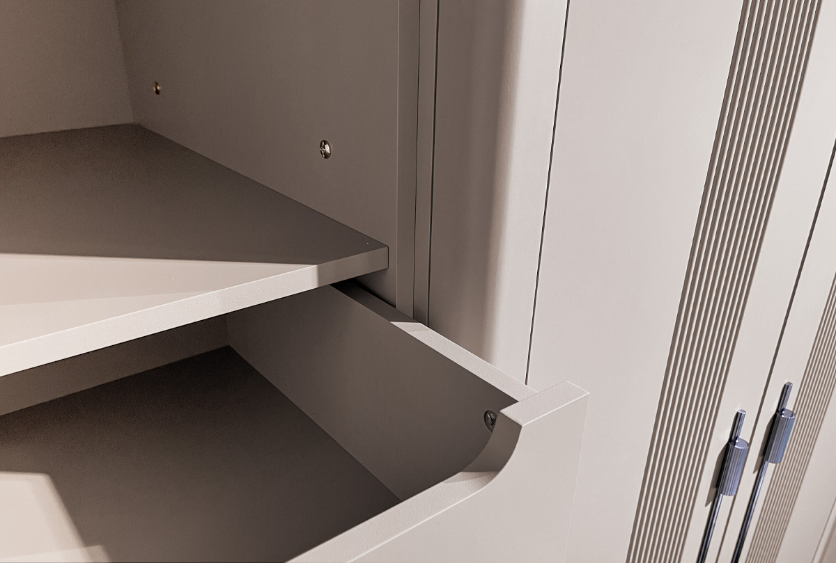 Особенности четырехдверного шкафа для одежды «Dune» (Дюна) в цвете «меренга»: