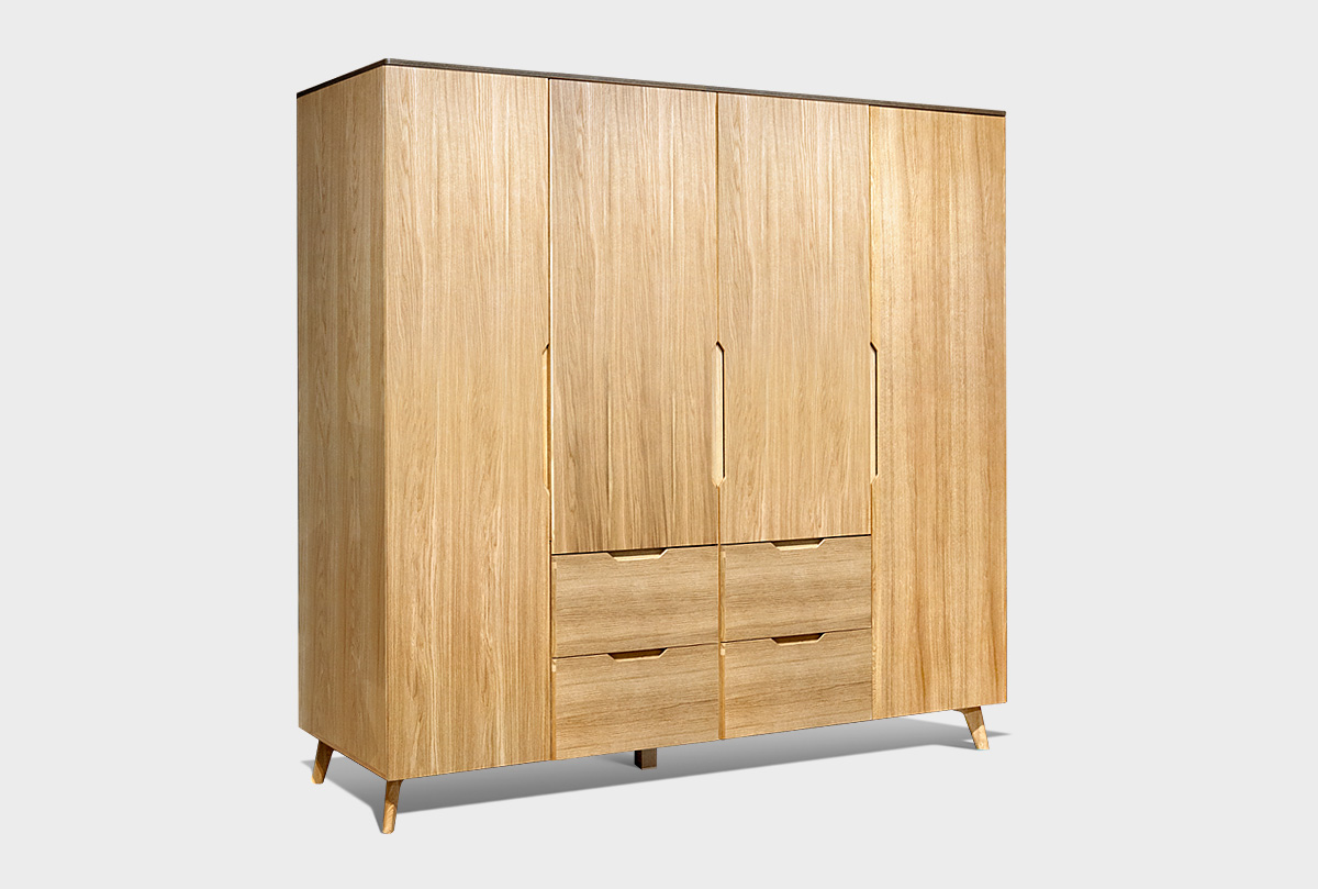 Особенности четырёхдверного шкафа для одежды Элва в цвете бейц-масло и графит: