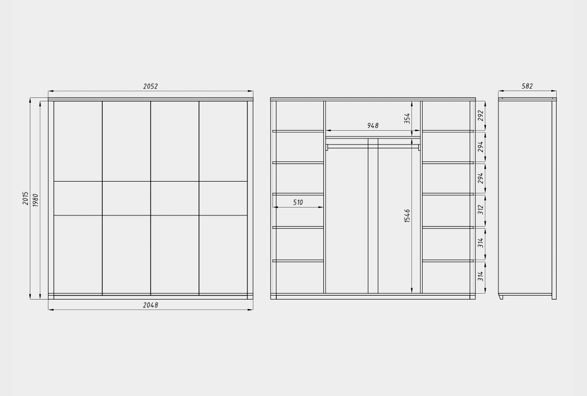 2052х2015х582 мм