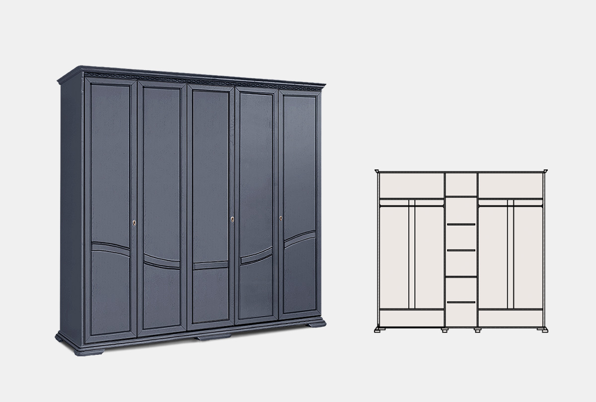 Особенности шкафа для одежды пятидверного «Лика» (без зеркала) в цвете «изабелла с темной патиной»: