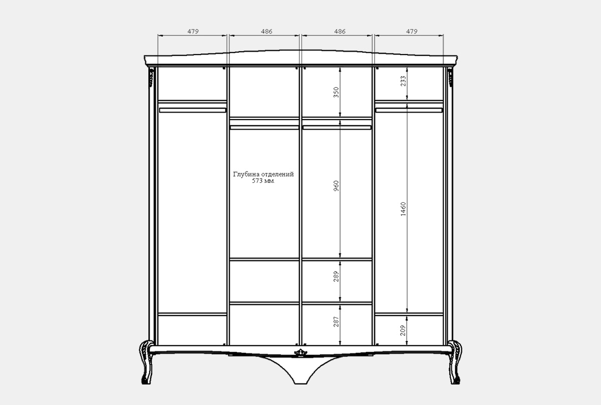 Особенности четырёхдверного шкафа Fleuron (без зеркала):