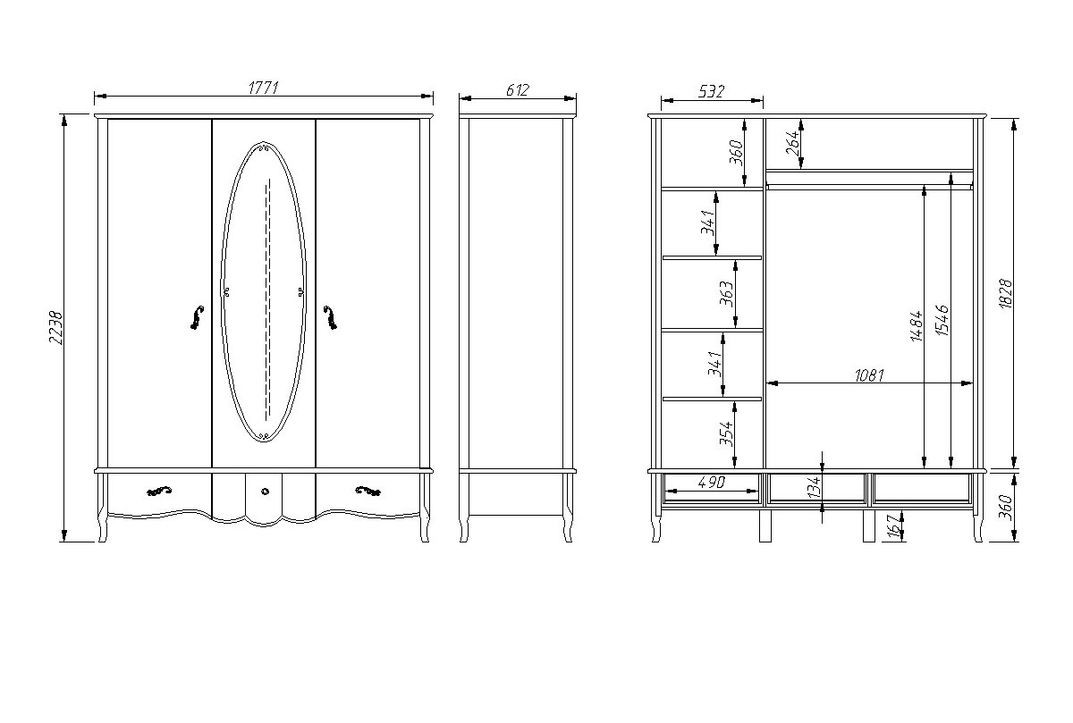 Шкаф для одежды "Катрин" 3-х дв. с зеркалом, шато, (.Г000047468)