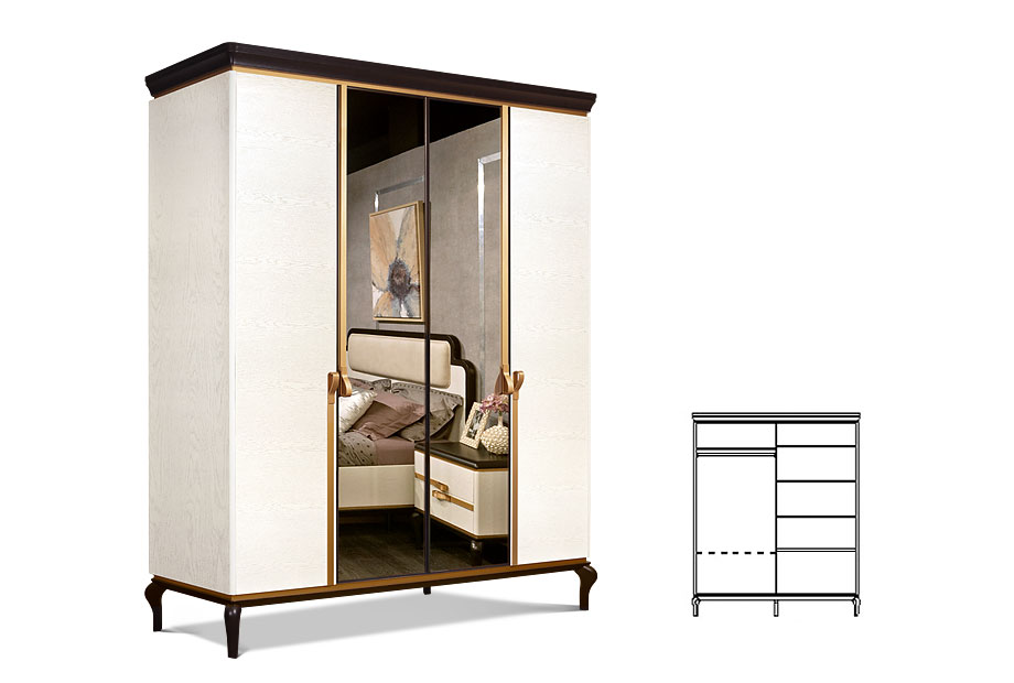 Элегантный и вместе с тем вместительный шкаф для одежды «Мадлен» (Madlen) выдержан в итальянском стиле – безупречная фурнитура под «золото» и фигурные ножки являются тому подтверждением.