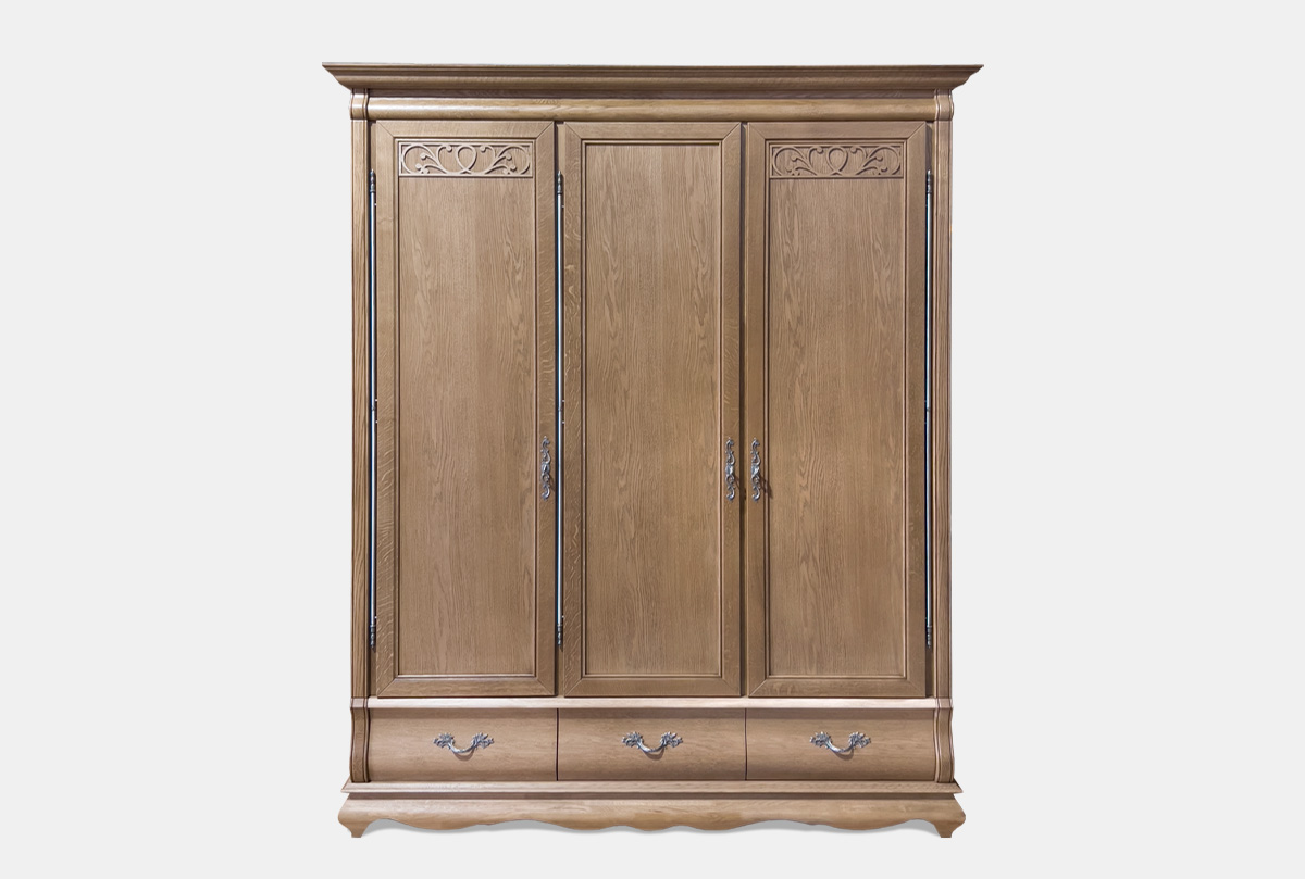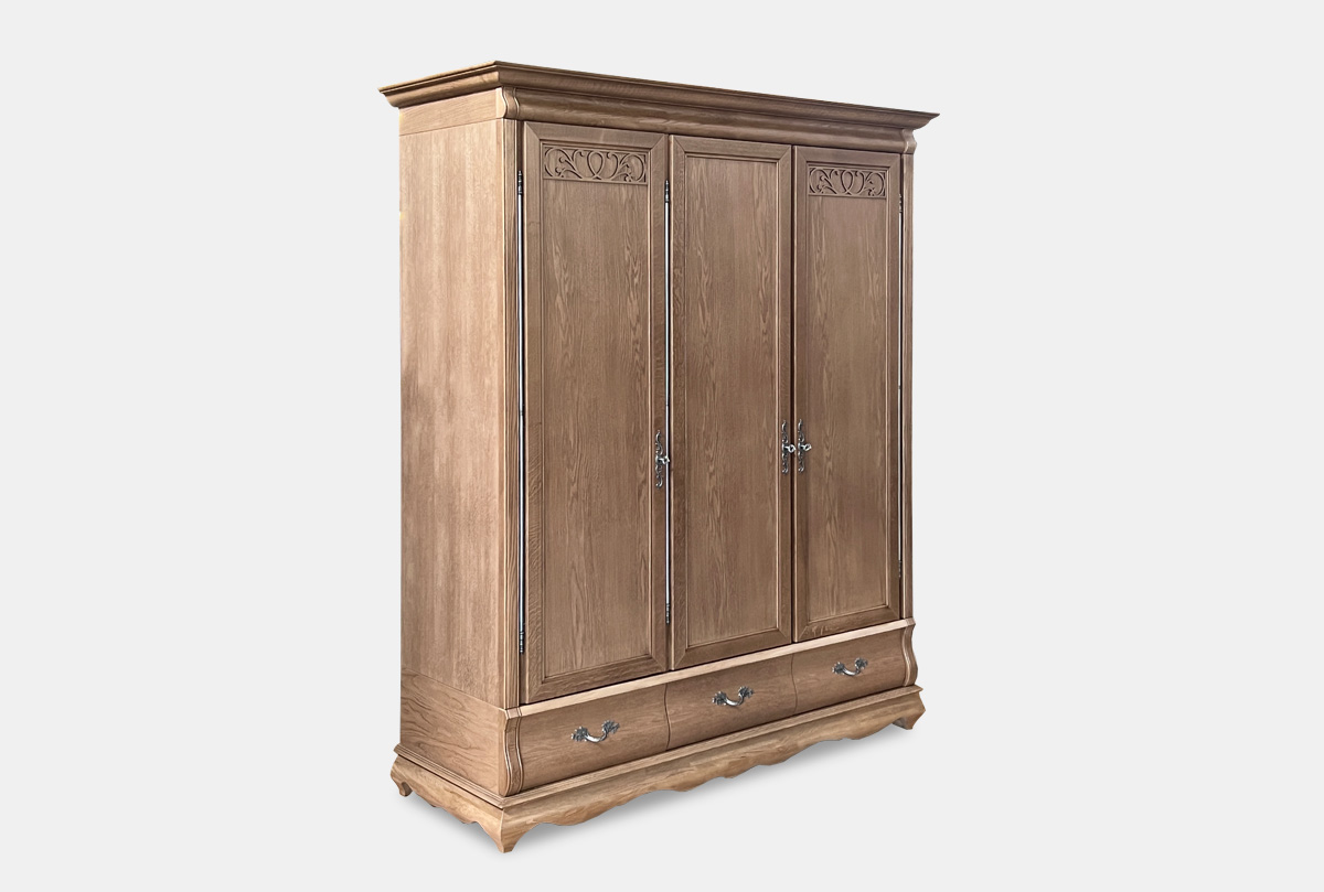 Ценителям классики обязательно понравится этот вместительный трехдверный шкаф без зеркала в цвете «классик», который поможет украсить спальню и навести порядок среди вещей. Коллекция «Тэфи» сочетает в себе безукоризненное оформление и непревзойденную функциональность каждого предмета.