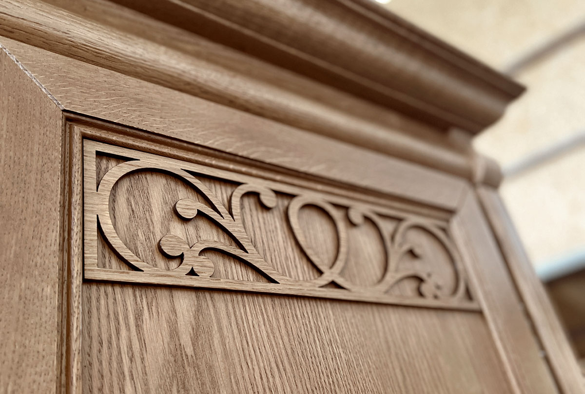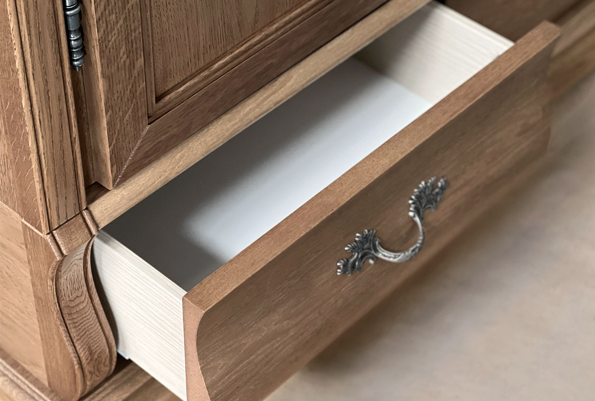 ✅ Гнутые фасады ящиков и фигурный цоколь в виде «волны».