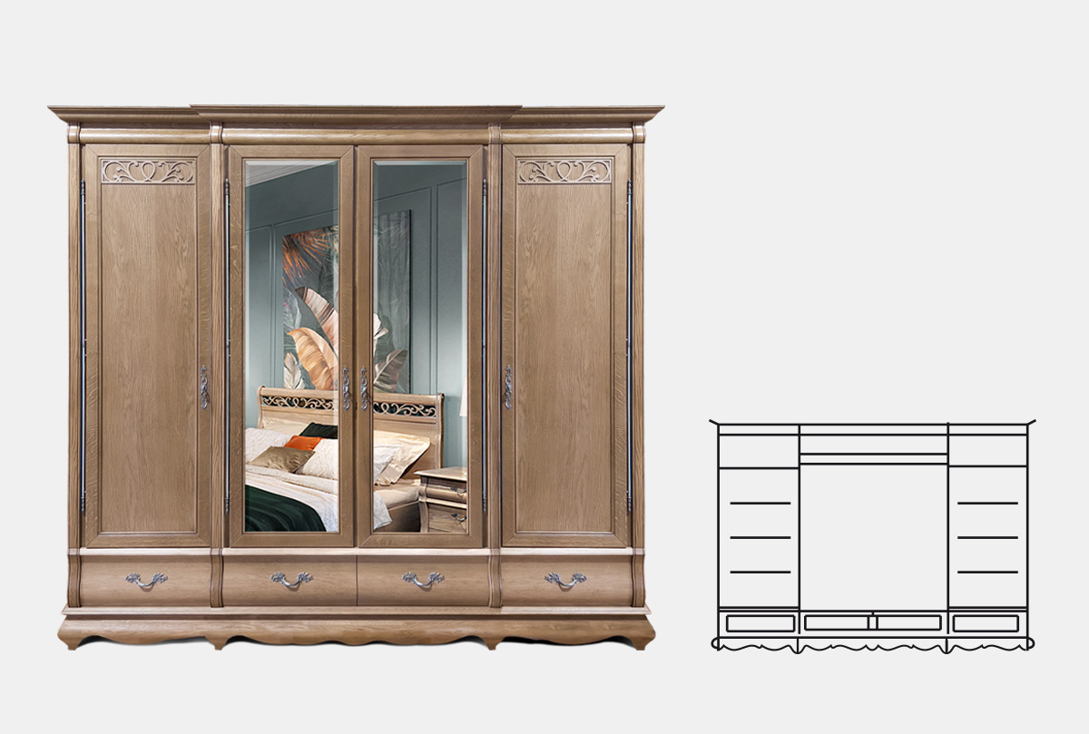 Шкаф для одежды "Тэфи" 4-х дв. с зеркалом, классик, (.Г000078454)