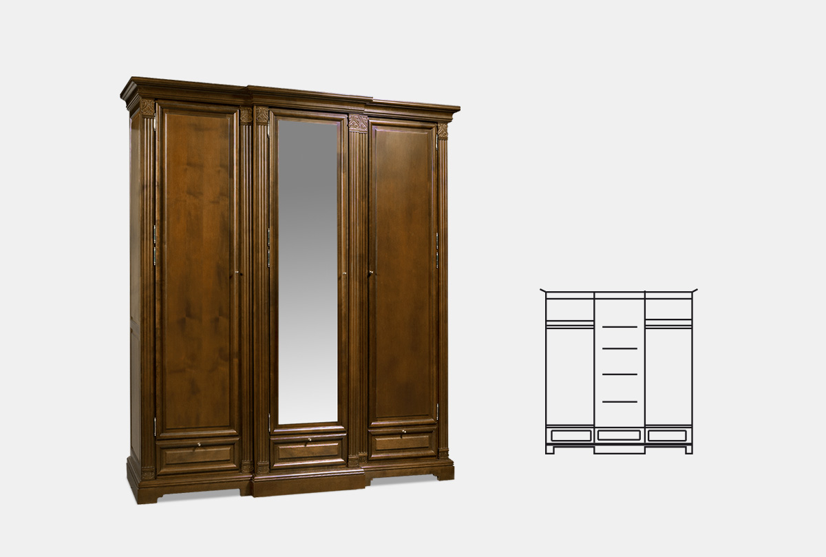 Коллекция "Престиж" представляет элегантный шкаф для одежды 23, который станет прекрасным дополнением к интерьеру спальни. Отсутствие лишних деталей и вычурности, большое зеркало, просторные отделения для одежды на вешалках, бельевые полки делают его удобным в использовании.