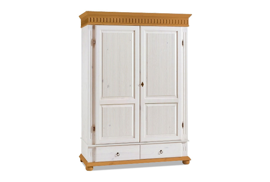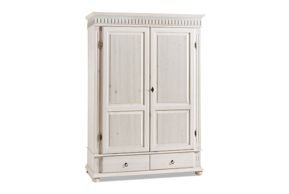 Этот шкаф из коллекции «Хельсинки-2-GT» (Helsinki) станет прекрасным дополнением вашего интерьера. За двумя распашными дверями находится вместительное пространство со штангой для одежды, а внизу - два выдвижных ящика. Шкаф в скандинавском стиле интересно декорирован верхней планкой и «старинной» фурнитурой, что делает его по-настоящему оригинальным.