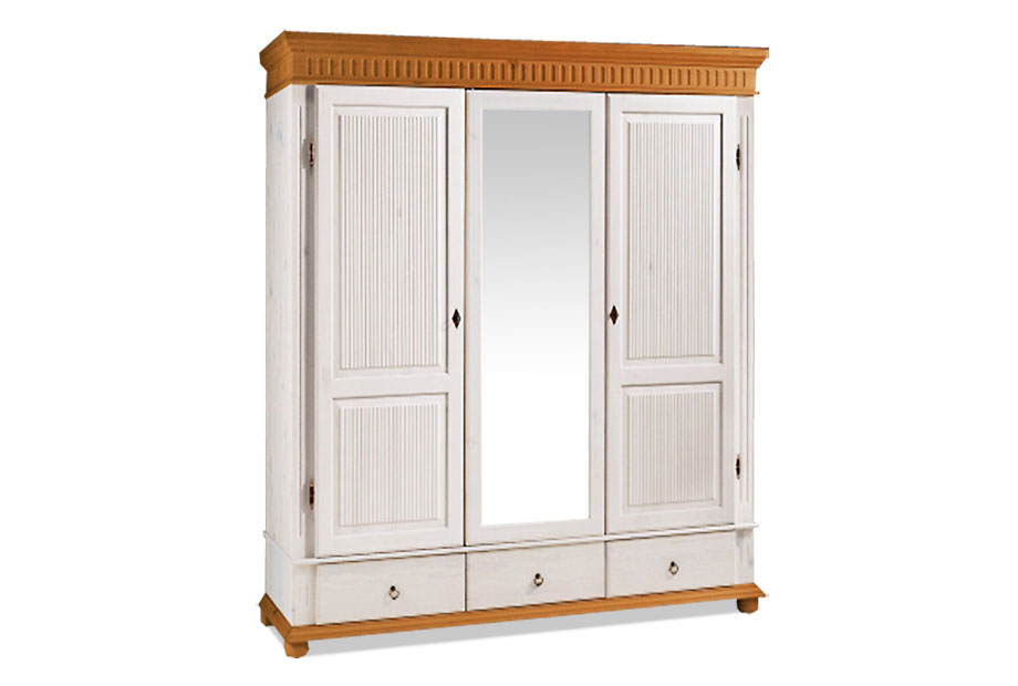 Трехстворчатый шкаф «Хельсинки-3-SP-GT» (Helsinki) из массива сосны с зеркалом - идеальное решение для большого гардероба. Внутри имеется вместительное пространство для одежды со штангой и две секции с 4 полками каждая, а также три выдвижных ящика внизу. Дверь посередине оборудована зеркалом в полный рост. Все двери можно запереть на замок, благодаря чему вы сможете быть уверены в сохранности своих вещей!