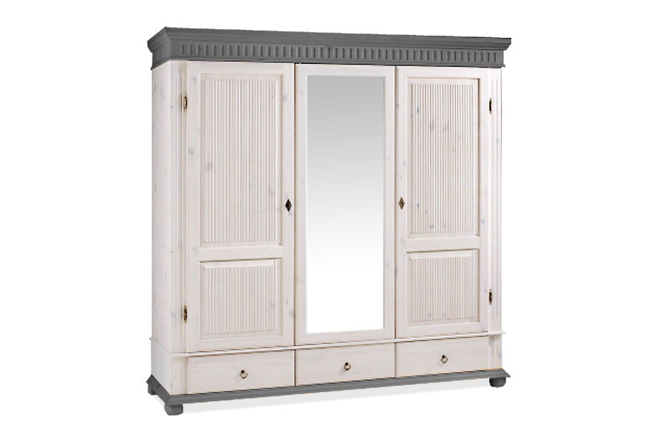 Трехстворчатый шкаф «Хельсинки-3-SP-GT» (Helsinki) из массива сосны с зеркалом - идеальное решение для большого гардероба. Внутри имеется вместительное пространство для одежды со штангой и две секции с 4 полками каждая, а также три выдвижных ящика внизу. Дверь посередине оборудована зеркалом в полный рост. Все двери можно запереть на замок, благодаря чему вы сможете быть уверены в сохранности своих вещей!