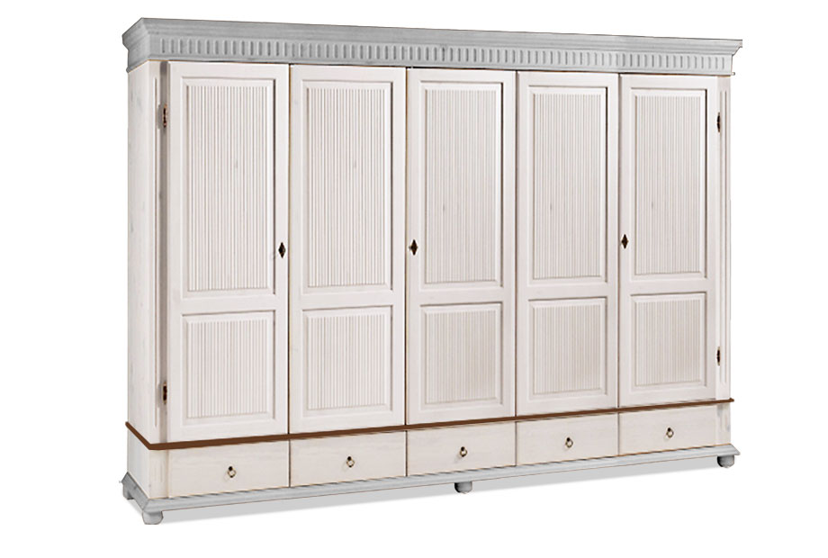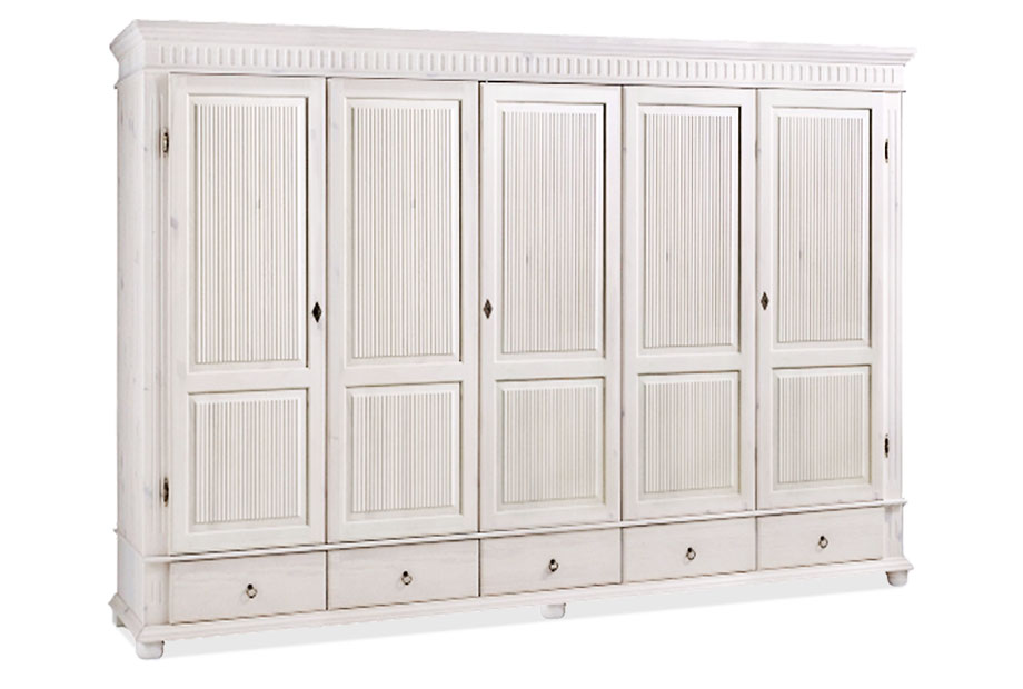 Шкаф «Хельсинки-5-GT-M» (Helsinki) займет много места, но и сохранит в порядке весь ваш гардероб. Он оснащен 5 распашными дверями, за которыми находятся два отделения для одежды со штангами и секции с полками для других вещей и головных уборов. Под каждой дверью находятся выдвижные ящики.