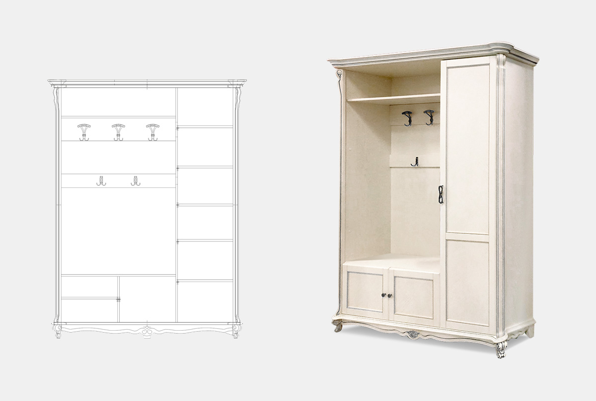 ✅ Правая/левая сторона определяется по расположению крючков. Если Вам необходимо, чтобы крючки были с правой стороны, вам нужно выбирать правый шкаф.