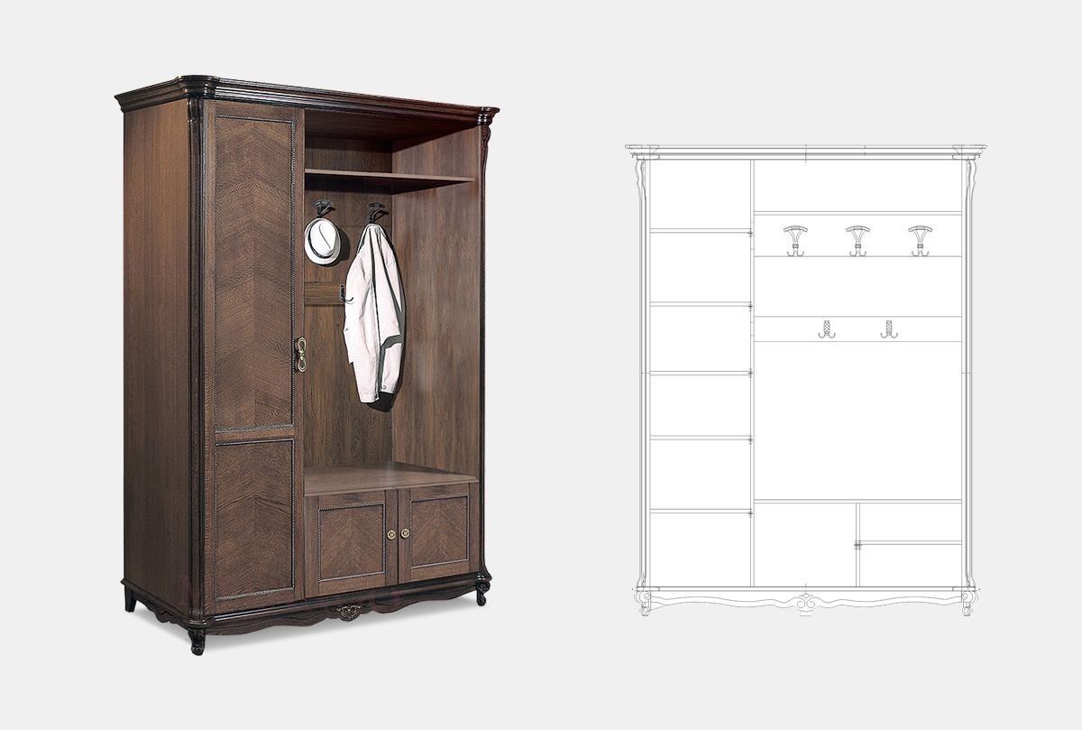 ✅ Правая/левая сторона определяется по расположению крючков. Если Вам необходимо, чтобы крючки были с правой стороны, вам нужно выбирать правый шкаф.