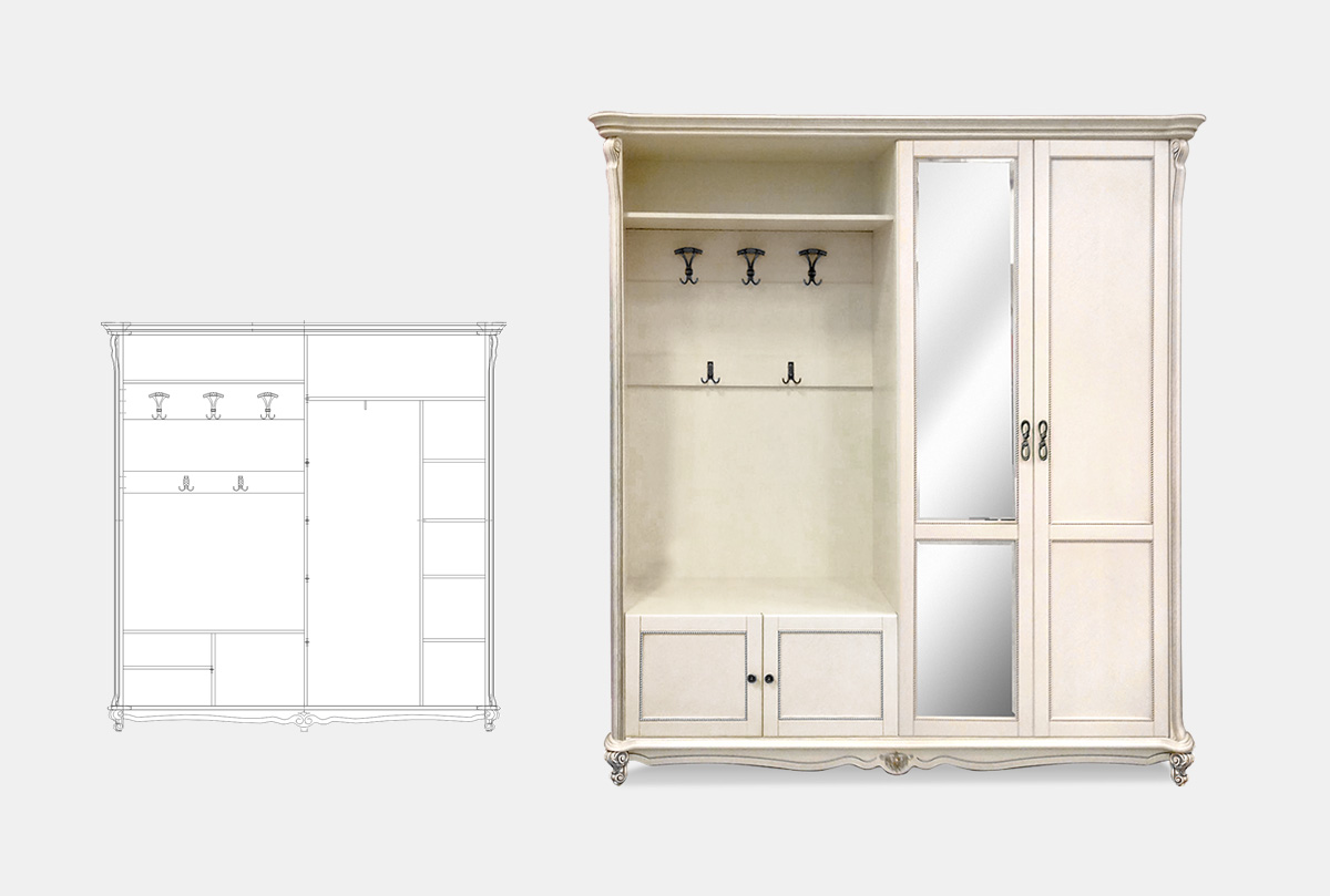 ✅ Правая/левая сторона определяется по расположению крючков. Если Вам необходимо, чтобы крючки были с правой стороны, вам нужно выбирать правый шкаф.